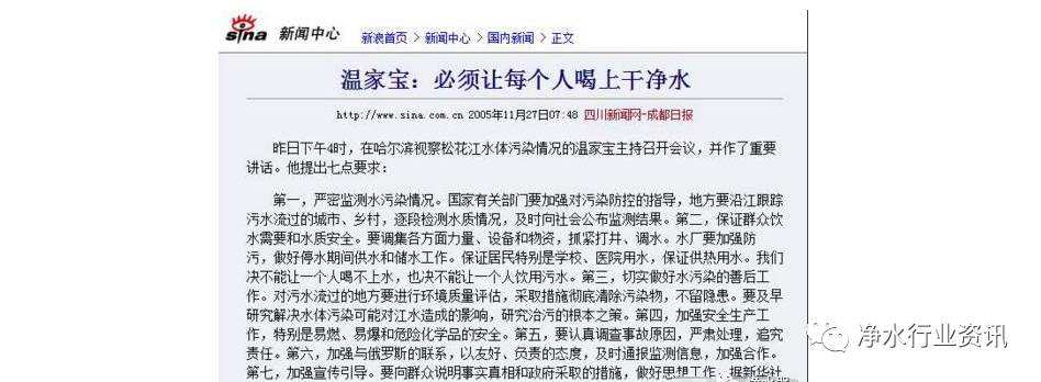 当然我们的前总理温家宝也曾经非常的重视人民的饮水安全;
